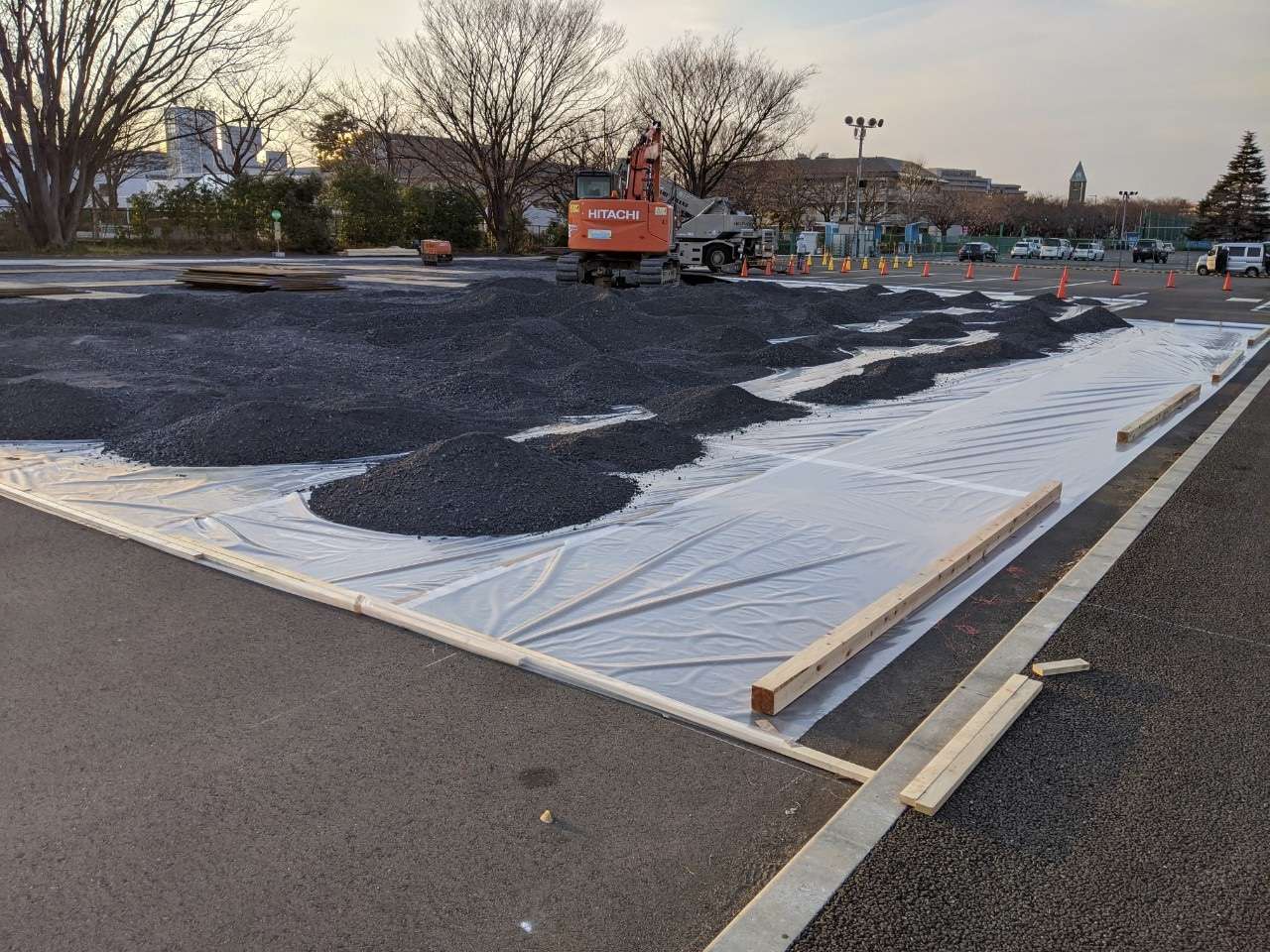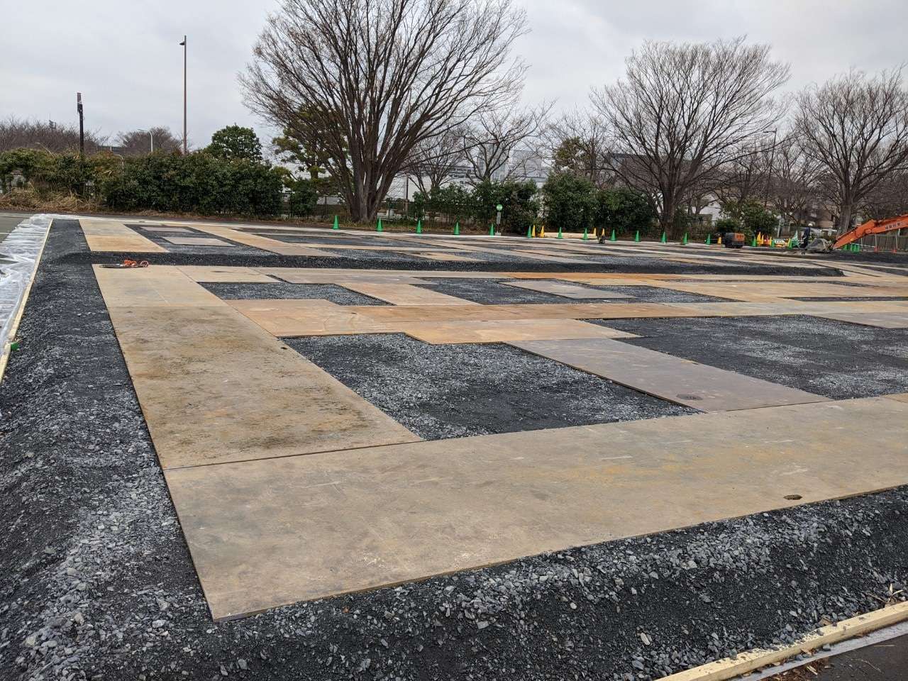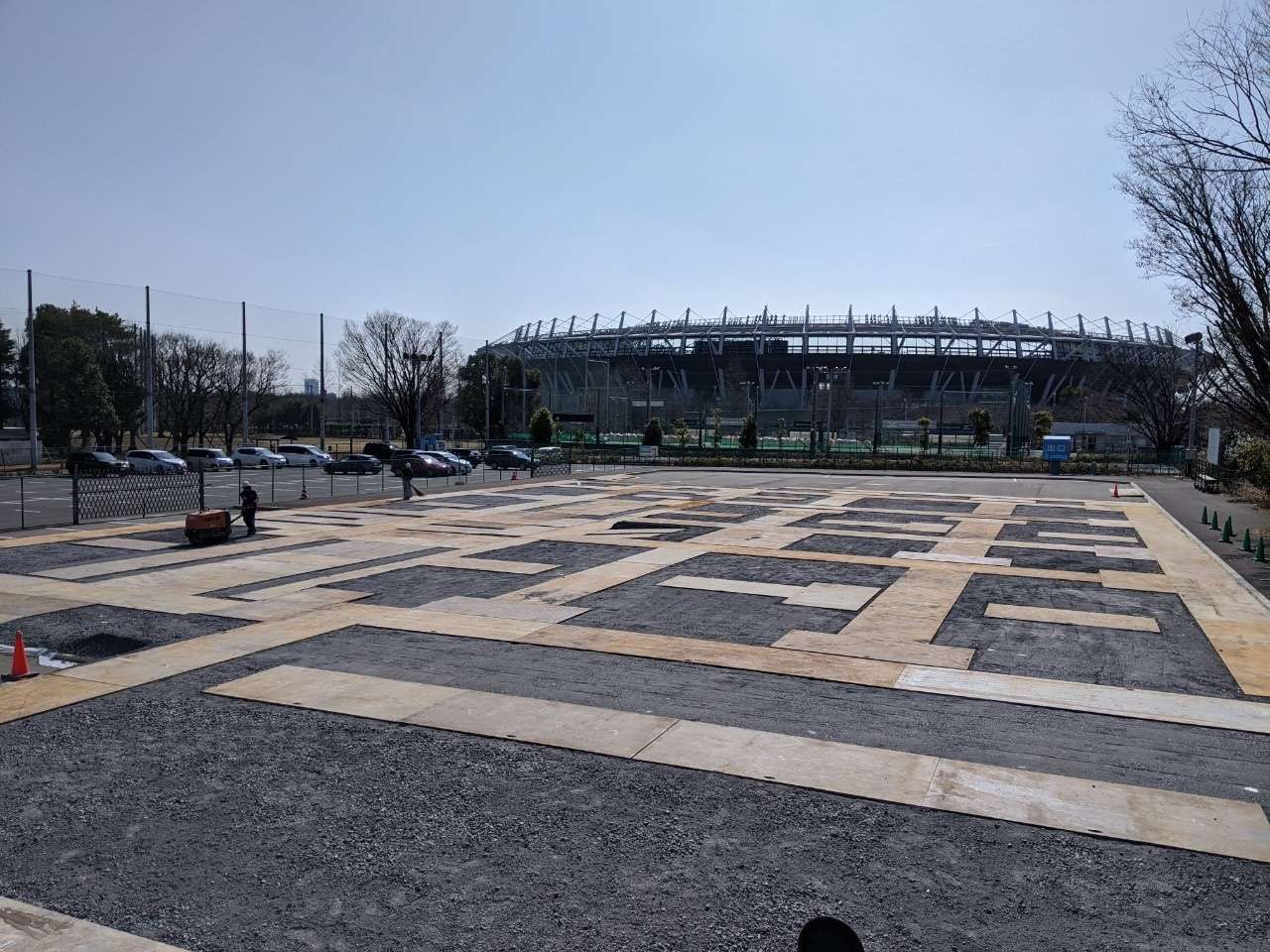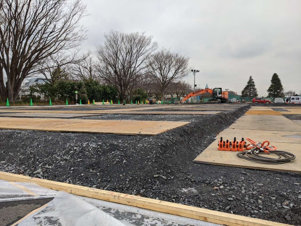 五輪の仮設ハウスの基礎の下地に挑戦です。