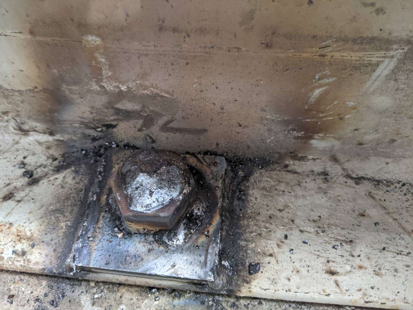 PC板自体は安全に取り外すため、ボルトを貫通して治具で吊り上げます。